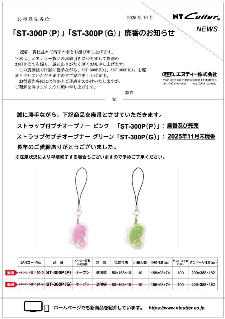 ST-300P(P), ST-300P(G) 廃番のお知らせ